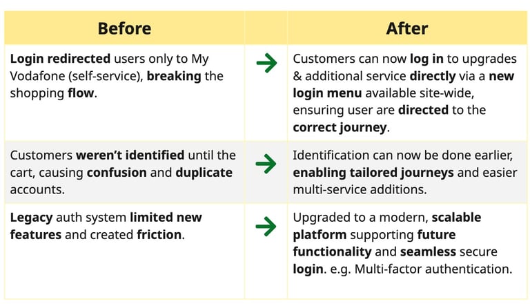 Vodafone’s existing online platform was fragmented and outdated, creating friction across customer authentication, handset upgrade, and additional service journeys.